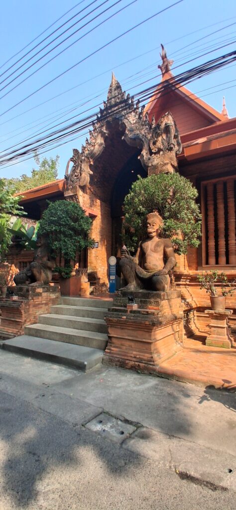 Plusieurs jours de visite sont prévus à Chiang Maï. Du coup la première visite sera pour la loundry (laverie) où on dépose son linge le matin et on le récupère le soir lavé et repassé pour 1e30 le kilo. Ah, ce qu’on aimerait avoir ça chez nous. Bon,  quand on repasse devant quelques heures plus tard, tout notre linge sèche au bord du trottoir !
