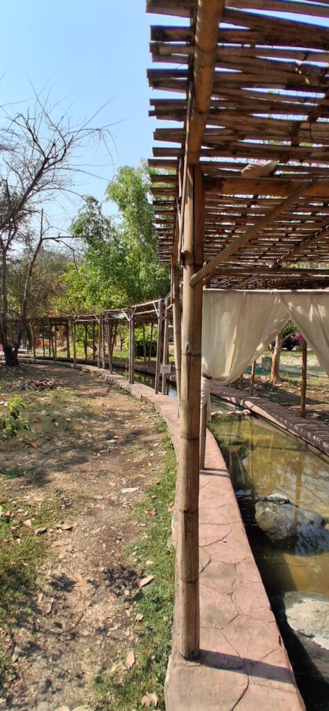 Puis il y a des petits canaux où l’eau se raffraichit peu à peu. Une portion entre 50 et 45 degrés, une portion entre 40 et 45. On peut se tremper les pieds en s’asseyant au bord des canaux. Ça forme un petit village, on peut y boire un coup.