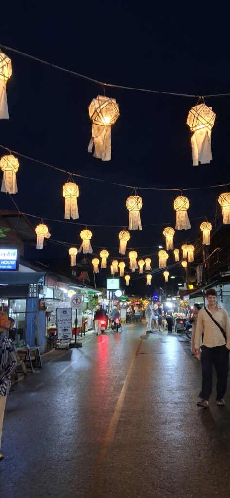 Le soir, la ville s’anime. La rue principale, avec ses échoppes, ses restaurants, ses stands de food street, est envahie de touristes. Ici pas de Thaï sauf pour tenir les boutiques. On n’imaginait pas Paï comme ça.