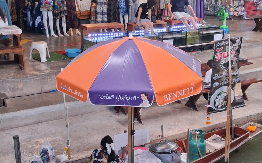 Cap est mis sur le marché flottant de Donsuak. Un marché flottant, c’est un peu le truc à voir en Thaïlande. Ca se passe sur un ou des canaux. Les vendeurs mettent leur marchandise sur leur barque et vendent depuis les barques. Les clients peuvent aussi se balader en barque et les accoster, ou à pied depuis le quai. Le marché de Donsuak est le plus réputé de Thaïlande. Il est situé à une heure environ de Bangkok ce qui fait que des tours operators emmènent les touristes par cars entiers tous les matins.