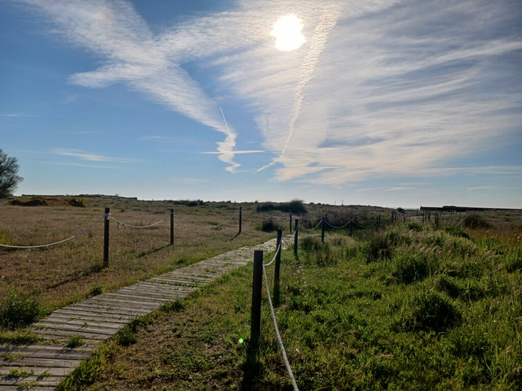 Le paysage ressemble plutôt à un paysage de Camargue. Un payage plat, sans doute il avait des marécages, avant. C’est très construit aujourd’hui, des constructions désordonneés , certaines assez laides et de très belles villas.