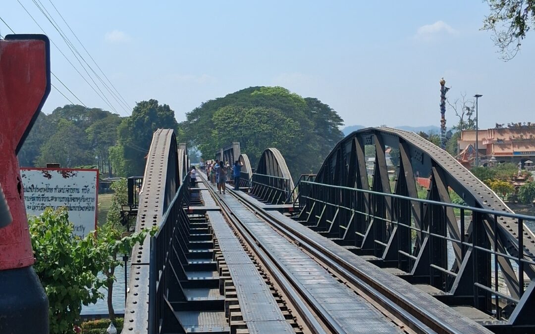 On passe devant le cimetière de tous ces hommes tués à la tâche par les Japonnais pendant la guerre. C’est terrible d’y penser. Puis on monte 80km plus haut pour voir l’endroit qui avait été le plus difficile lors de la construction de la voie de chemin de fer. On visite le musée, cela fait froid dans le dos cette cruauté de l’homme envers l’homme… on ne peut pas aller faire la randonnée dans le site à cause des brulis. Les thaï brulent les champs pour les fertiliser. Il y a du feu et de la fumée. Pas de rando.