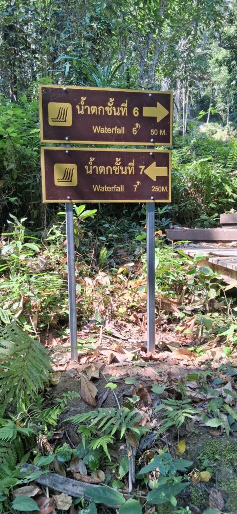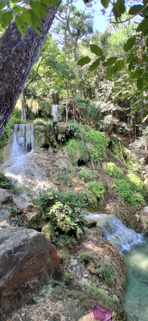 On arrive facilement en haut en 1h30 en prenant notre temps pour admirer chacune des cascades. Je me baigne dans la 7ème cascade, puis on redescend. La descente offre de jolis points de vue. On s’arrête pour se baigner dans plusieurs bassins. Il est 13h quand on arrive, la chaleur monte maintenant.